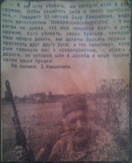 -არ გეგონოს, რომ არ მიყვარხარ, ვიცი როდესაც დავალებაზე გაგზავნი შეიძლება არ დამიბრუნდე, მაგრამ ისიც ვიცი ყველაფერს გააკეთებ რაც შესაძლებელი იქნება. სხვა რომ გავუშვა და არ დამიბრუნდეს როგორ ჩავხედო მის ოჯახს თვალებში, ხომ იტყვიან თავისი შვილი შეინახა და ჩემი გასწირაო...- თითქოს ცეცხლში ამოიკითხა ეს სიტყვები... თავი ავტომატზე ჩამოედო და კოცონს უყურებდა, თავის მოუბრუნებლად გააგრძელა, -მე სხვაგვარად არ ძალმიძს შვილო და გთხოვ ამათ ნათქვამს ყურს ნუ უგდებ.- ეს იყო პასუხი უხერხულ კითხვაზე, რომელიც საგუშაგოზე კოცონის ირგვლივ შეკრებილმა მეომრებმა დაუსვეს.- ერთადერთი გვარის გამგრძელებელი თან გახლავს საომრად და რთულ დავალებებზე ყოველთვის მას აგზავნი, არ გეშინია უბედურება რომ შეემთხვესო? (სხვისი არ ვიცი და ჩემთვის ეს სიტყვებია პატრიოტიზმი). თუმცა მხოლოდ ამ სიტყვებით არ შემოიფარგლა ეროვნული მოძრაობის ერთერთი ლიდერის, “განახლების“ ასეულის მეთაურის ზაური კვაშილავას პატრიოტიზმი... ეროვნული მოძრაობიდან ერთი ბრონირებული ჟილეტი ჰქონდა შემორჩენილი და ართუ თვითონ, თავის შვისაც არ გამოუყენებია, ყოველთვის სხვას აცმევდა... 52 წელი ღირსეულად იცხოვრა, სოფელში „ბაბუს“ ან „ჯარისკაცის მამას“ ეძახდნენ. ყოველთვის სტკიოდა ქვეყნის ბედი, ყოველთვის იქ იყო სადაც მამულს სჭირდებოდა... იმ ავბედით დღესაც 1992 წლის 3 დეკემბერს ათარა არმიანსკისა და ათარა აფხაზსკის საზღვართან შეტაკების დროს თავისი ვაჟი (ვაჟი რომელიც 1 დეკემბერს გახდა 21 წლის და იმ დღეს იყო ზაურის ბოლო ქეიფი (მას შემდეგ არ უჭამია) ეროვნული მოძრაობისდროინდელ მეგობრებთან და ახლობლებთან, ყველას თვითონ ემსახურებოდა და განსაკუთრებით ეფერებოდა ყველა სტუმარს) ედგა გვერდით, როცა გმირულად შესწირა სიცოცხლე სამშობლოს! მას იმდენად უყვარდა განახლება, რომ ალბათ ვერ შეძლებდ განახლების გარეშე არსებობას და იქ დაიმკვიდრა სამუდამო განსასვენებელი...