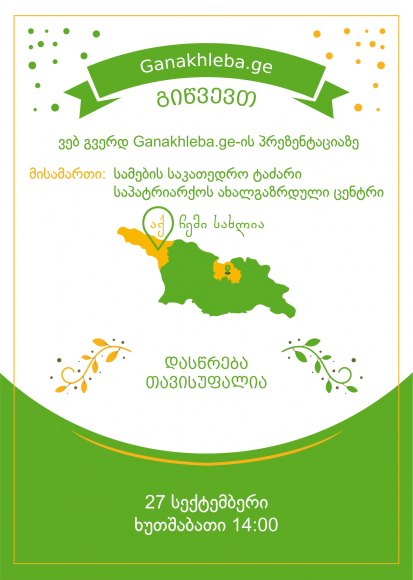 2018 წლის 27 სექტემბერს 14:00 სთ -ზე საპატრიარქოს ახალგაზრდულ ცენტრში გაიმართება პროექტის "აქ ჩემი სახლია" და ვებ გვერდის www Ganakhleba.ge წარდგენა.