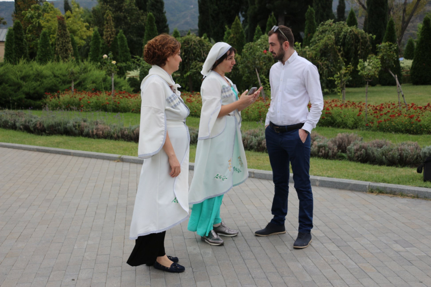 ფოტო გადაღებულია 2018 წლის 27 სექტემბერს პროექტის პირველი პრეზენტაციის დღეს სამების საკატედრო ტაძრის ეზოში. ზუსტად მახსოვს რაზე ვსაუბრობთ აქ. მიუხედავად იმისა,რომ დიდი პრობლემა გვქონდა, დარბაზის ტექნიკურად გამართვა ვისაც ევალებოდა არ გამოცხადდა და ასე ვთქვათ პრეზენტაცია ჩაშლის პირას იყო. სულაც არ მეტყობა მღელვარება, ვინაიდან ნიკას მრავალმხრივი ცოდნის და უნარის იმედი მქონდა.